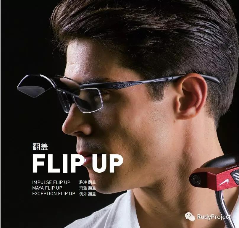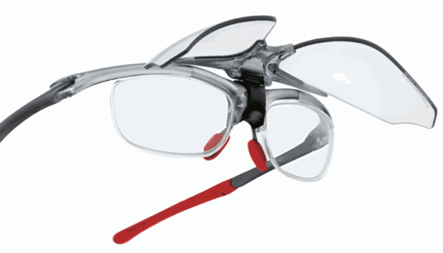 早在上世纪末,这种简单的近视与运动镜结合为一体的方案一度成为近视者配专业运动镜的首选,而Rudy 首创的FLIP UP翻盖式,也成为90年代非常新潮的配镜结构。FLIP UP翻盖式近视运动镜,从结构上看,光学镜片在内,运动镜片在外,相当于普通近视眼镜外层安装一个可翻盖的运动防风镜。因此,它可翻,可盖;可拆卸,可组合,造型独特,外观拉风。