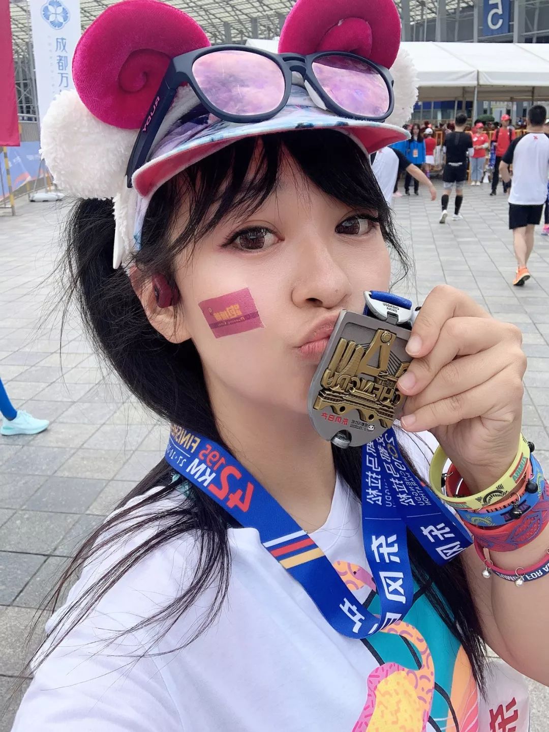 因为要跑马,不能放肆吃喝,但是对于女生来说,奶茶甜食的诱惑简直难以抵挡。尤其是越野之后的恢复期,特别想吃甜食,那时候就很考验自控能力了。我会在桌子上贴小纸条告诫自己吃优质碳水,不吃垃圾食品。同时更加关注自己的休息,延长睡眠来恢复身体。通过学习,我还会买一些相应的运动补品,筋膜枪什么的做赛后的按摩,让自己恢复的更快更好。