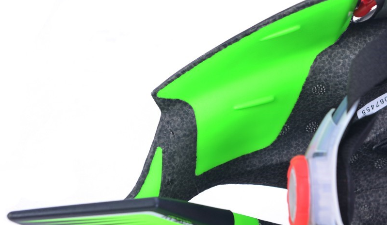 WING57配备了一个加长的气动尾翼设计,采用磁力吸附的安装方式,可以安装在尾部上面,如果车手的背部和肩膀到头盔尾部的距离过大就可以使用这个尾翼,使头盔更加贴近身体,能够增强VORTEX KILLER SYSTEM的效果,使气流更快地流过并且增加头盔内部的散热效果。